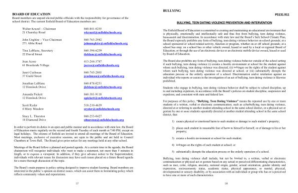 BOARD OF EDUCATION Board members are unpaid elected public officials with the responsibility for governance of the school district . The current Enfield Board of Education members are :