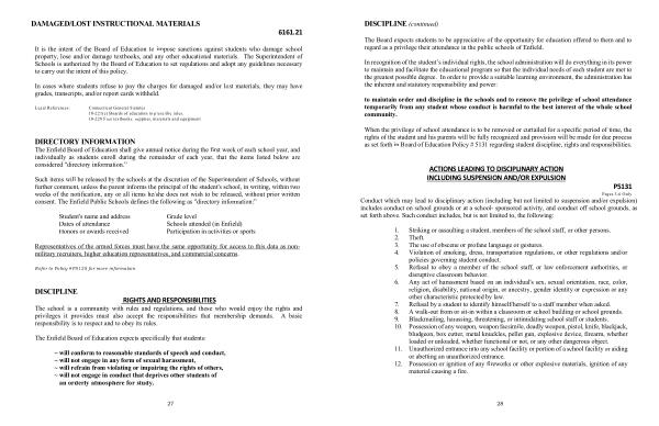 It is the intent of the Board of Education to impose sanctions against students who damage school property , lose and / or damage textbooks , and any other educational materials . The Superintendent of Schools is authorized by the Board of Education to set regulations and adopt any guidelines necessary to carry out the intent of this policy .