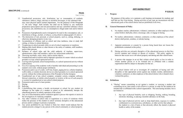 The purpose of this policy is to maintain a safe learning environment for students and staff that are free from hazing . Hazing activities of any type are inconsistent with the educational goals of the school district and are prohibited at all times .