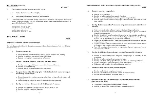 Objectives / Priorities of the Instructional Program – Educational Goals ( continued ) 6120