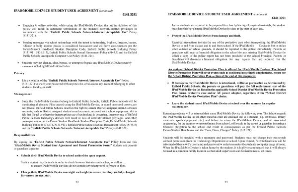 IPAD / MOBILE DEVICE STUDENT USER AGREEMENT ( continued ) 6141.3291