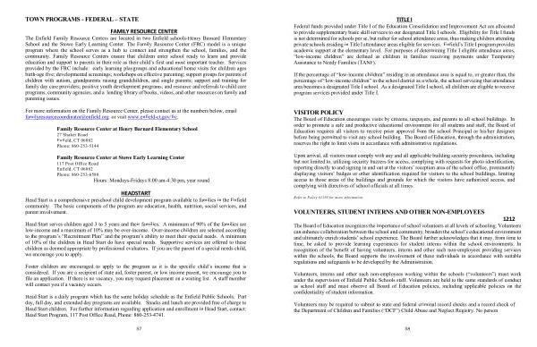 TITLE I Federal funds provided under Title I of the Education Consolidation and Improvement Act are allocated to provide supplementary basic skill services to our designated Title I schools . Eligibility for Title I funds is not determined for schools per se , but rather for school attendance areas , thus making children attending private schools residing in Title I attendance areas eligible for services . Enfield ’ s Title I program provides academic support at the elementary level . For purposes of determining Title I eligible attendance areas , “ low-income children ” are defined as children in families receiving payments under Temporary Assistance to Needy Families ( TANF ).