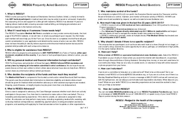 RESCU offers its programs and assistance to ANY PARTICIPANT of a Faire or Festival, either past