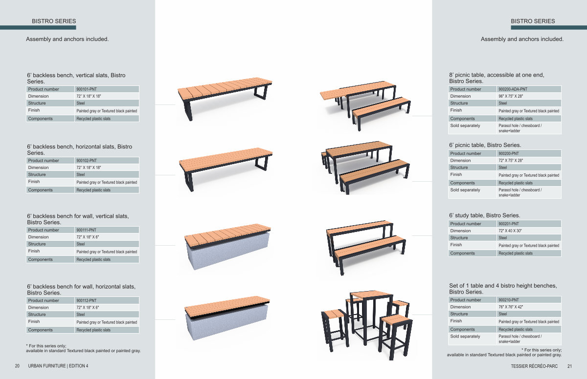 Set of 1 table and 4 bistro height benches, Bistro Series.