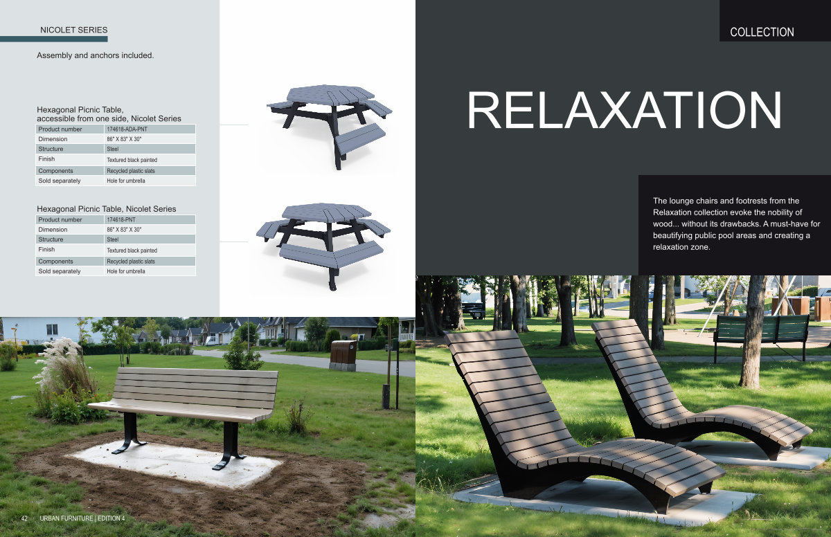 The lounge chairs and footrests from the Relaxation collection evoke the nobility of wood... without its drawbacks. A must-have for beautifying public pool areas and creating a relaxation zone.