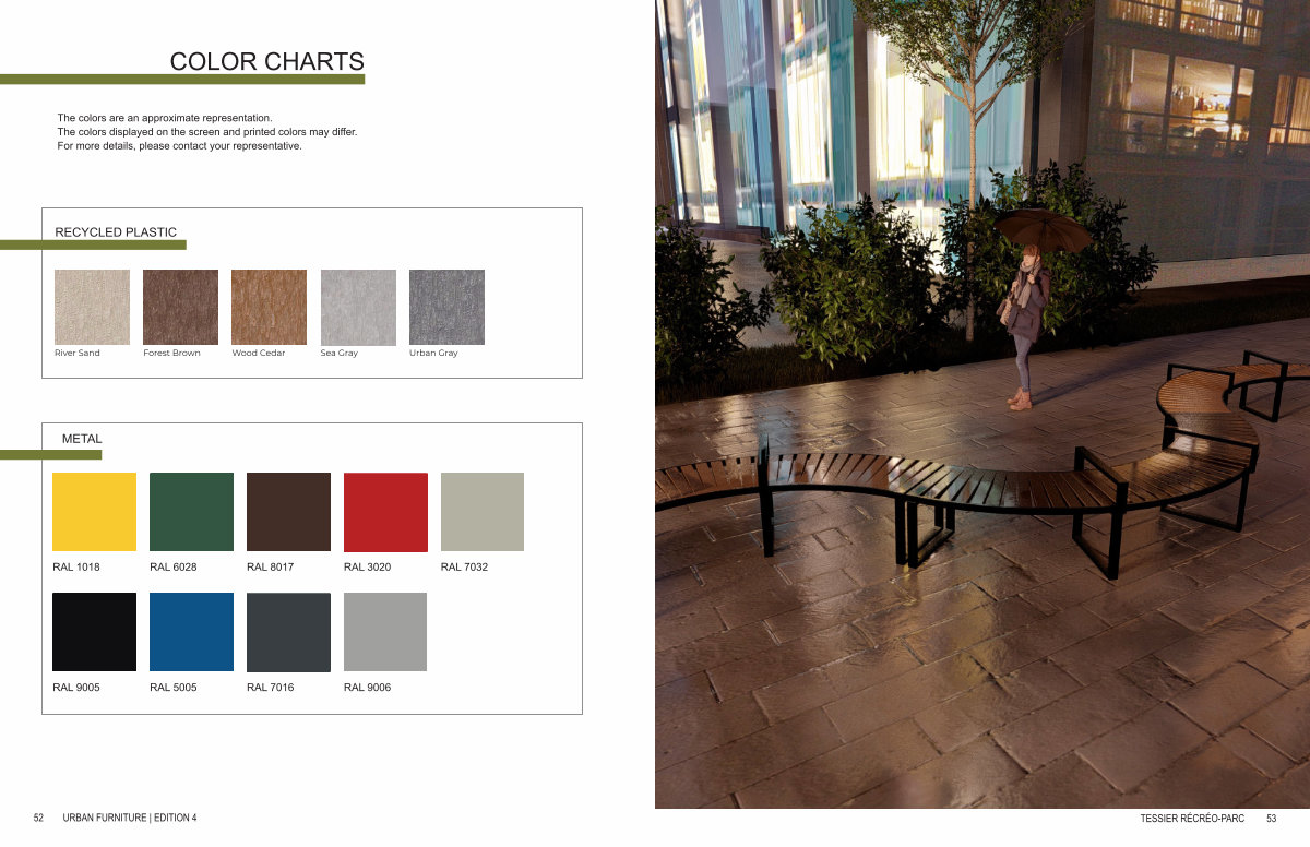 The colors are an approximate representation. The colors displayed on the screen and printed colors may differ. For more details, please contact your representative.