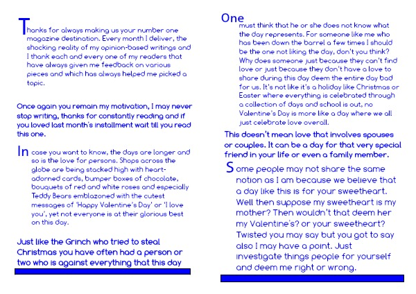 hanks for always making us your number one magazine destination. Every month I deliver, the shocking reality of my opinion-based writings and I thank each and every one of my readers that have always given me feedback on various pieces and which has always helped me picked a topic.