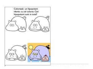 Colorează un hipopotam identic cu cel colorat . Cati hipopotami sunt in total ?