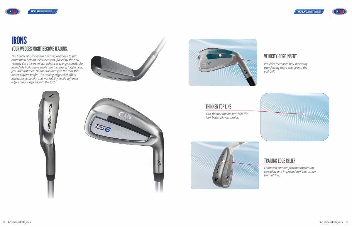 The Center of Gravity has been repositioned to put more mass behind the sweet spot, fueled by the new Velocity Core insert, which enhances energy transfer for incredible ball speeds while also increasing forgiveness, feel, and distance. Thinner toplines give the look that better players prefer. The trailing edge relief offers increased versatility and workability, while softened edges reduce digging into the turf.