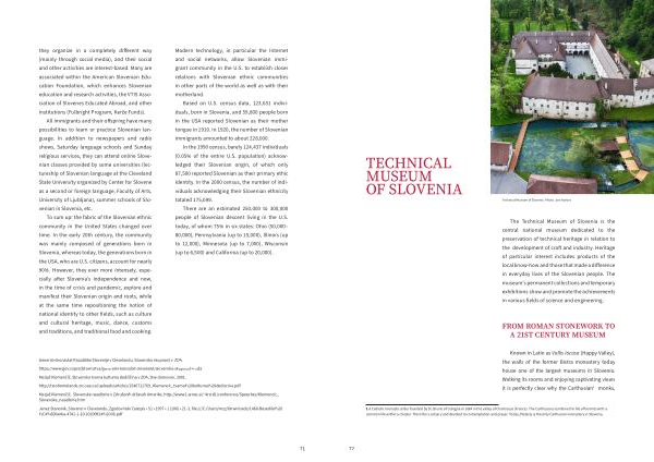 Generalni konzulat Republike Slovenije v Clevelandu , Slovenska skupnost v ZDA . https :// www . gov . si / predstavnistva / generalni-konzulat-cleveland / slovenska-skupnost-v-zda Matjaž Klemenčič , Slovenska tvarna kulturna dediščina v ZDA , Dve domovini , 2001 . http :// twohomelands . zrc-sazu . si / uploads / articles / 1546711769 _ Klemencic _ tvarna % 20kulturna % 20dediscina . pdf