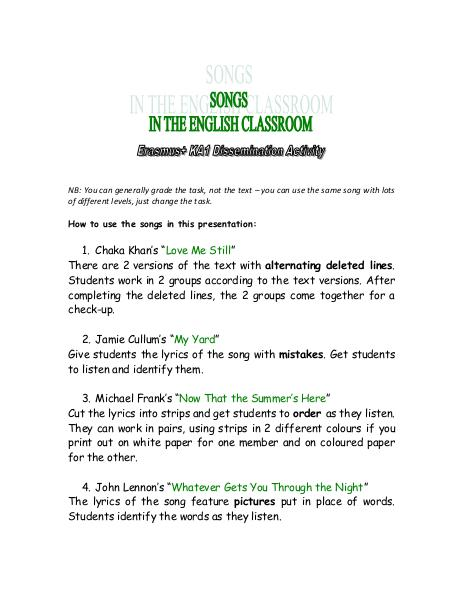 NB: You can generally grade the task, not the text – you can use the same song with lots