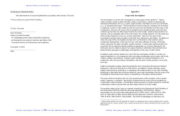The merchandise covered by the investigation is certain quartz surface products. 13 Quartz