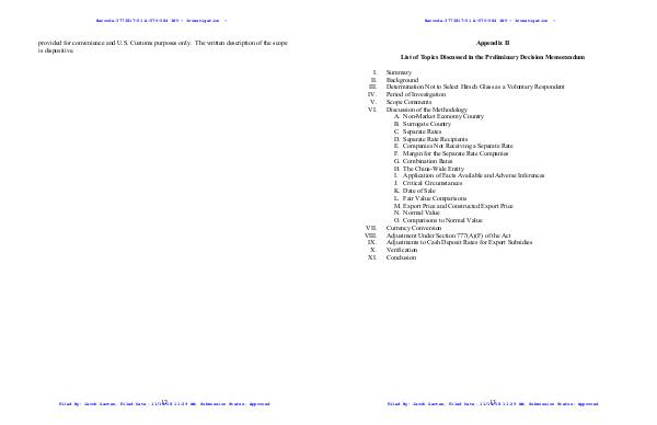 Determination Not to Select Hirsch Glass as a Voluntary Respondent