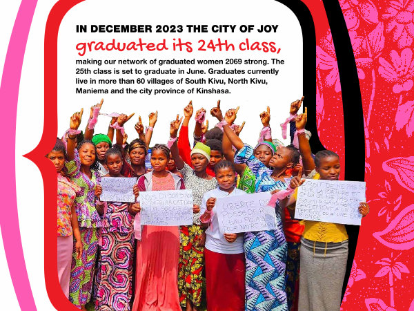 making our network of graduated women 2069 strong. The 25th class is set to graduate in June. Graduates currently live in more than 60 villages of South Kivu, North Kivu, Maniema and the city province of Kinshasa.