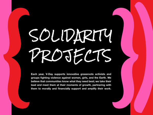Each year, V-Day supports innovative grassroots activists and groups fighting violence against women, girls, and the Earth. We believe that communities know what they need best; we take their lead and meet them at their moments of growth, partnering with them to morally and financially support and amplify their work.