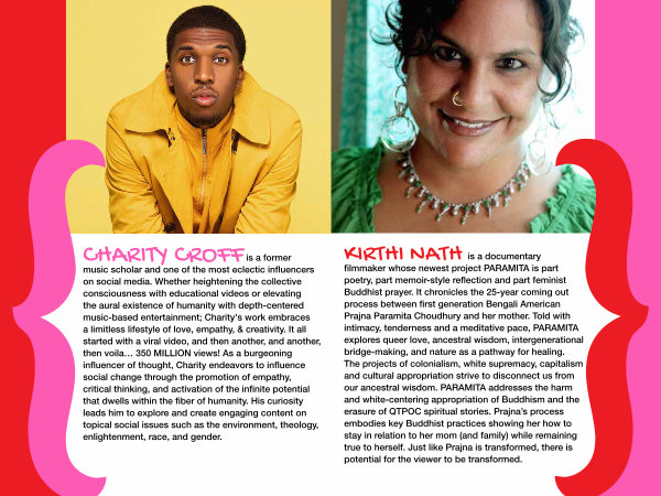 KIRTHI NATH is a documentary filmmaker whose newest project PARAMITA is part poetry, part memoir-style reflection and part feminist Buddhist prayer. It chronicles the 25-year coming out process between first generation Bengali American Prajna Paramita Choudhury and her mother. Told with intimacy, tenderness and a meditative pace, PARAMITA explores queer love, ancestral wisdom, intergenerational bridge-making, and nature as a pathway for healing. The projects of colonialism, white supremacy, capitalism and cultural appropriation strive to disconnect us from our ancestral wisdom. PARAMITA addresses the harm and white-centering appropriation of Buddhism and the erasure of QTPOC spiritual stories. Prajna’ s process embodies key Buddhist practices showing her how to stay in relation to her mom( and family) while remaining true to herself. Just like Prajna is transformed, there is potential for the viewer to be transformed.