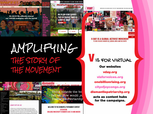 V IS FOR VIRTUAL Our websites vday. org visforvoices. org onebillionrising. org cityofjoycongo. org dismantlepatriarchy. org