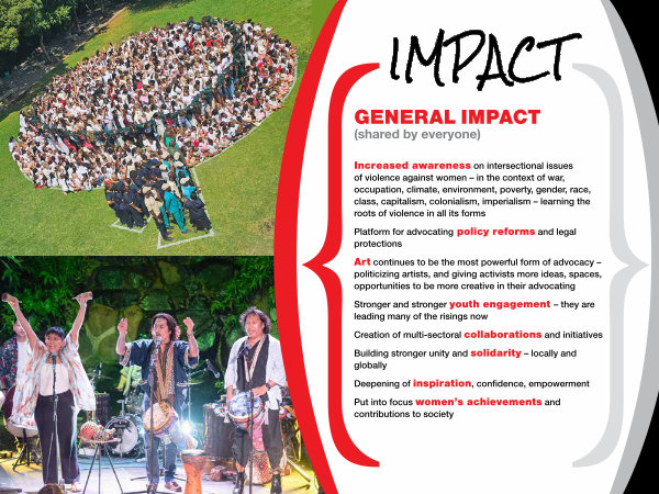 Increased awareness on intersectional issues of violence against women – in the context of war, occupation, climate, environment, poverty, gender, race, class, capitalism, colonialism, imperialism – learning the roots of violence in all its forms