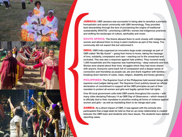 Over 80 local government units held OBR events throughout the country – with many cities declaring February 14 as OBR Day of Observance – which means it is officially tied to their mandates to prioritize ending all forms of violence against women and girls – as well as mandating them to do risings each year.