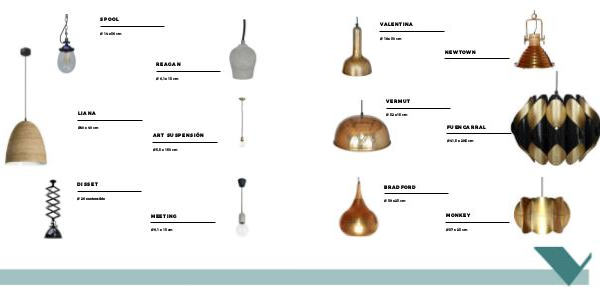 SPOOL Ø 14 x 36 cm REAGAN Ø 6,1 x 13 cm LIANA Ø40 x 40 cm ART SUSPENSIÓN Ø 5,5 x 150 cm DISSET Ø 26 x extensible MEETING Ø 6,1 x 13 cm