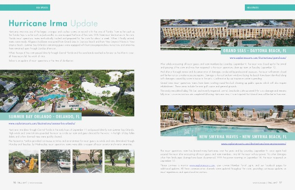 secured the resort after evacuating all resort guests and team members. Irma left the resort without power. No other damages