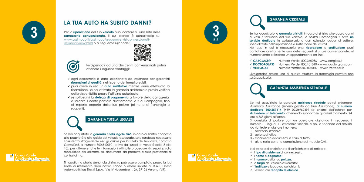 Se hai acquistato la garanzia assistenza stradale potrai chiamare Assimoco Assistance( servizio gestito da Blue Assistance), al numero dedicato 800.257114(+ 39 02.26962499 se chiami dall’ estero) per richiedere un intervento, ottenendo supporto in qualsiasi momento, 24 ore e 365 giorni all’ anno. Si consiglia di parlare con un operatore digitando in sequenza i numeri: 1- lingua; 1- assistenza veicolo, e poi, a seconda del servizio da richiedere, digitare il numero: 1 – soccorso stradale; 2 – auto sostitutiva; 3 – rifacimento documenti in caso di furto; 4 – aiuto nella corretta compilazione del modulo CAI.