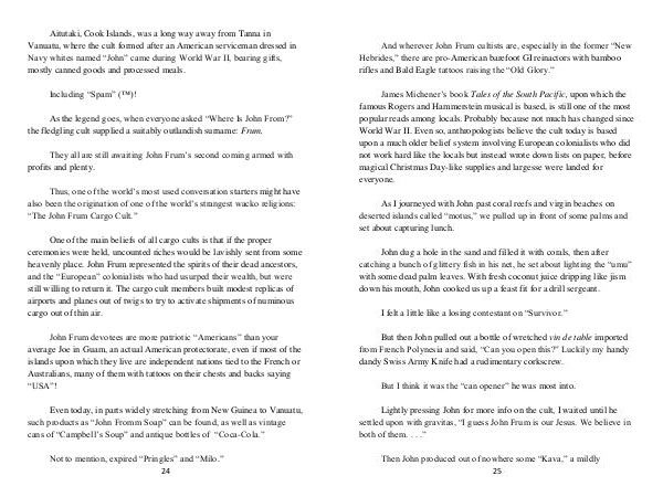 settled upon with gravitas, “I guess John Frum is our Jesus. We believe in