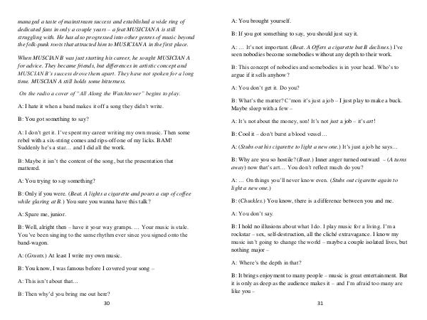 A: … It’s not important. (Beat. A Offers a cigarette but B declines.) I’ve