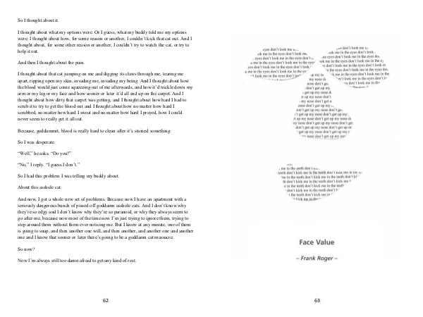 one and I know that sooner or later there’s going to be a goddamn cat massacre.