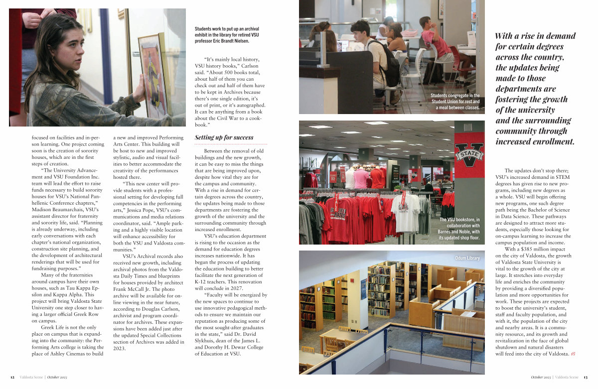 VSU’ s Archival records also received new growth, including archival photos from the Valdosta Daily Times and blueprints for houses provided by architect Frank McCall Jr. The photo archive will be available for online viewing in the near future, according to Douglas Carlson, archivist and program coordinator for archives. These expansions have been added just after the updated Special Collections section of Archives was added in 2023.