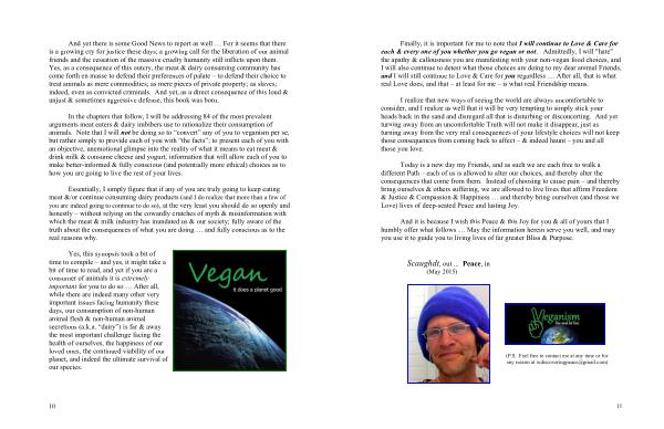 In the chapters that follow , I will be addressing 84 of the most prevalent arguments meat eaters & dairy imbibers use to rationalize their consumption of animals . Note that I will not be doing so to “ convert ” any of you to veganism per se , but rather simply to provide each of you with “ the facts ”; to present each of you with an objective , unemotional glimpse into the reality of what it means to eat meat & drink milk & consume cheese and yogurt ; information that will allow each of you to make better-informed & fully conscious ( and potentially more ethical ) choices as to how you are going to live the rest of your lives .