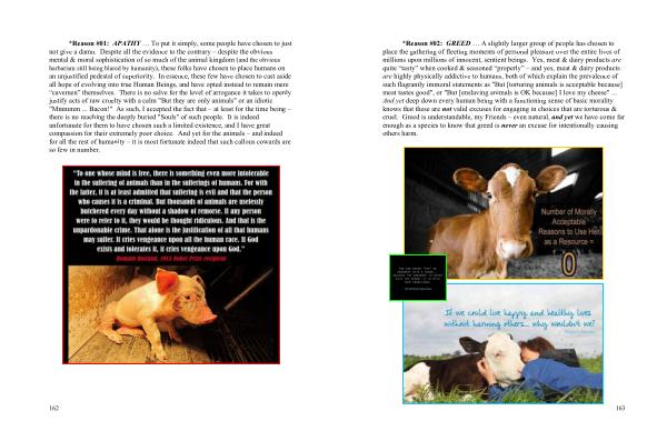 * Reason # 01 : APATHY … To put it simply , some people have chosen to just not give a damn . Despite all the evidence to the contrary – despite the obvious mental & moral sophistication of so much of the animal kingdom ( and the obvious barbarism still being blared by humanity ), these folks have chosen to place humans on an unjustified pedestal of superiority . In essence , these few have chosen to cast aside all hope of evolving into true Human Beings , and have opted instead to remain mere “ cavemen ” themselves . There is no salve for the level of arrogance it takes to openly justify acts of raw cruelty with a calm " But they are only animals " or an idiotic " Mmmmm ... Bacon !" As such , I accepted the fact that – at least for the time being – there is no reaching the deeply buried " Souls " of such people . It is indeed unfortunate for them to have chosen such a limited existence , and I have great compassion for their extremely poor choice . And yet for the animals – and indeed for all the rest of humanity – it is most fortunate indeed that such callous cowards are so few in number .