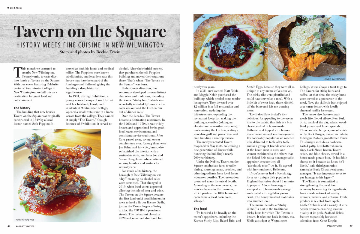 The menu includes a“ sticky skillet,” a nod to the traditional sticky buns for which The Tavern is known. It takes me back in time, too. While a student at Westminster