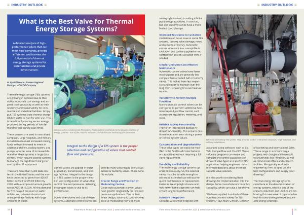 A detailed analysis of highperformance valves that can meet flow demands, provide efficiency, and harness the full potential of thermal energy storage systems for water utilities and private infrastructure.