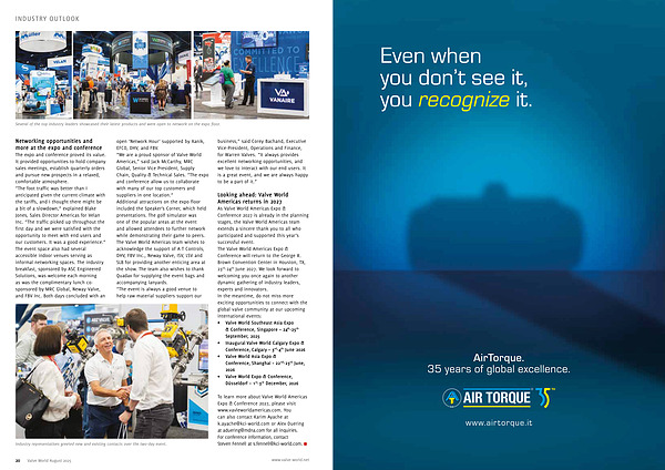 business,” said Corey Bachand, Executive Vice-President, Operations and Finance, for Warren Valves.“ It always provides excellent networking opportunities, and we love to interact with our end users. It is a great event, and we are always happy to be a part of it.”