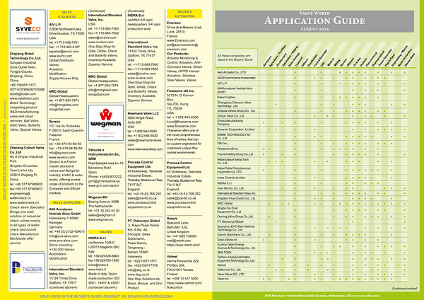 VALVE WORLD BUYERS’ GUIDE + ONLINE • August 2025 |
