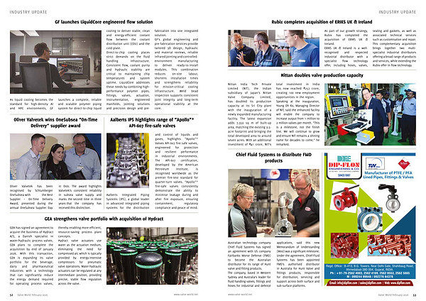 Australian technology company Chief Fluid Systems has signed an agreement with US company Fairbanks Morse Defense( FMD) to become the Australian distributor for its range of Hunt valve and fitting products. The company, based in Western Sydney and Australia’ s leader for fluid handling valves, fittings and hoses for industrial and defence applications, said this new Memorandum of Understanding( MoU) was a significant milestone. Under the agreement, Chief Fluid Systems has been appointed FMD’ s authorised distributor in Australia for Hunt Valve and fittings products, responsible for distribution, servicing and support across both surface and sub-surface platforms. www. valve-world. net Valve World February 2026