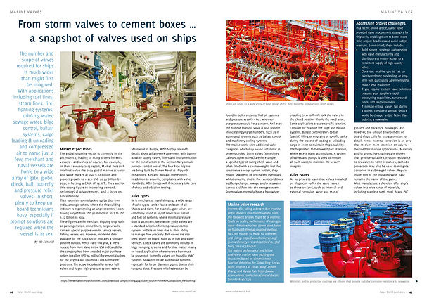 The global shipping sector is currently in the ascendency, leading to many orders for extra vessels – and valves of course. For example, in their February 2025 report, Market Research Intellect i value the 2024 global marine actuator and valve market at USD 9.42 billion and project growth to reach USD 20.53 billion by 2031, reflecting a CAGR of 13.86 %. They ascribe this strong figure to increasing demand, technological advancements, and a focus on sustainability. Their optimism seems backed up by data from India, amongst others, where the shipbuilding industry is experiencing an unprecedented boom, having surged from USD 90 million in 2022 to USD 1.12 billion in 2024. These figures are for merchant shipping only, such as passenger ships, cruise liners, cargo vessels, rankers, special purpose vessels, service vessels, fishing vessels, etc. However, incidental data available for the naval sector indicates a similarly positive outlook. Hence early this year, a press release from Hunt Valve in the USA indicated that the company had been awarded major purchase orders( totalling USD 96 million) for essential valves for the Virginia and Columbia-Class submarine programs. The scope includes ship service ball valves and forged high-pressure system valves.