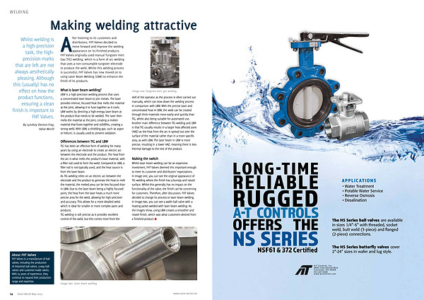 After listening to its customers and distributors, FHT Valves decided to move forward and improve the welding appearance on its finished products. FHT Valves originally used manual Tungsten Inert Gas( TIG) welding, which is a form of arc welding that uses a non-consumable tungsten electrode to produce the weld. Whilst this welding process is successful, FHT Valves has now moved on to using Laser Beam Welding( LBW) to enhance the finish of its products.