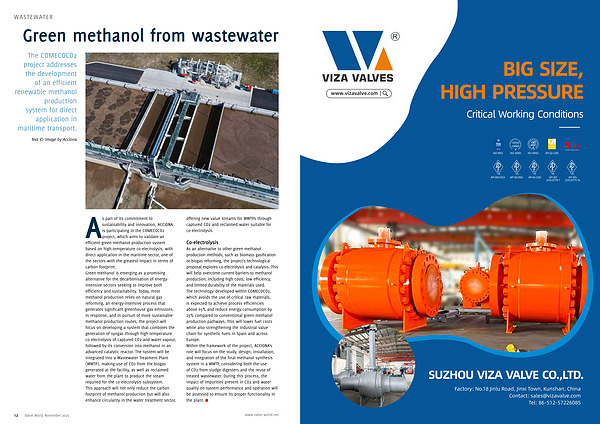 As part of its commitment to sustainability and innovation, ACCIONA is participating in the COMECOCO2 project, which aims to validate an efficient green methanol production system based on high-temperature co-electrolysis, with direct application in the maritime sector, one of the sectors with the greatest impact in terms of carbon footprint. Green methanol is emerging as a promising alternative for the decarbonisation of energyintensive sectors seeking to improve both efficiency and sustainability. Today, most methanol production relies on natural gas reforming, an energy-intensive process that generates significant greenhouse gas emissions. In response, and in pursuit of more sustainable methanol production routes, the project will focus on developing a system that combines the generation of syngas through high-temperature co-electrolysis of captured CO2 and water vapour, followed by its conversion into methanol in an advanced catalytic reactor. The system will be integrated into a Wastewater Treatment Plant( WWTP), making use of CO2 from the biogas generated at the facility, as well as reclaimed water from the plant to produce the steam required for the co-electrolysis subsystem. This approach will not only reduce the carbon footprint of methanol production but will also enhance circularity in the water treatment sector, offering new value streams for WWTPs through captured CO2 and reclaimed water suitable for co-electrolysis.