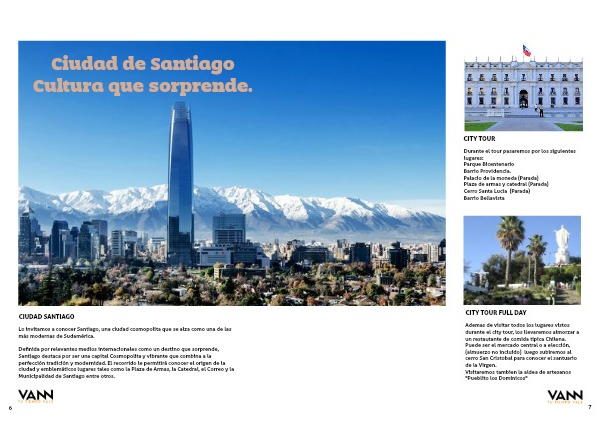 Ademas de visitar todos los lugares vistos durante el city tour, los llevaremos almorzar a un restautante de comida tipica Chilena.
