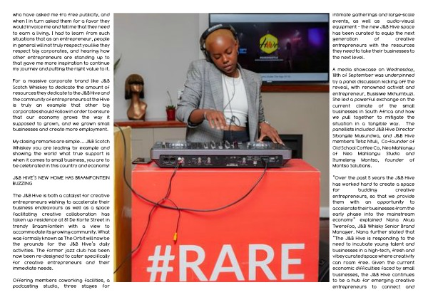 intimate gatherings and large-scale events, as well as audio-visual equipment - the new J&B Hive space has been curated to equip the next generation of creative entrepreneurs with the resources they need to take their businesses to the next level.