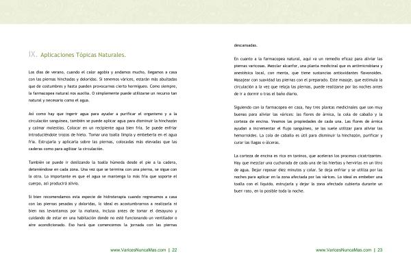 La corteza de encina es rica en taninos , que aceleran los procesos cicatrizantes . Hay que mezclar una cucharada de cada una de las hierbas y hervirlas en un litro de agua . Dejar reposar diez minutos y colar . Se deja enfriar y se utiliza por las noches para aplicar en la zona afectada por las várices . Lo ideal es embeber una toalla con el líquido , estrujarla y dejar la zona afectada cubierta durante un buen rato , en lo posible toda la noche . www . VaricesNuncaMas . com | 23