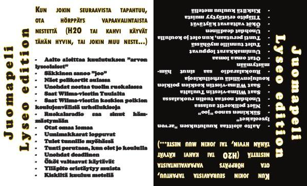 Ihan selvästi lukio minun makuuni. En ollut yhtään omahyväinen.