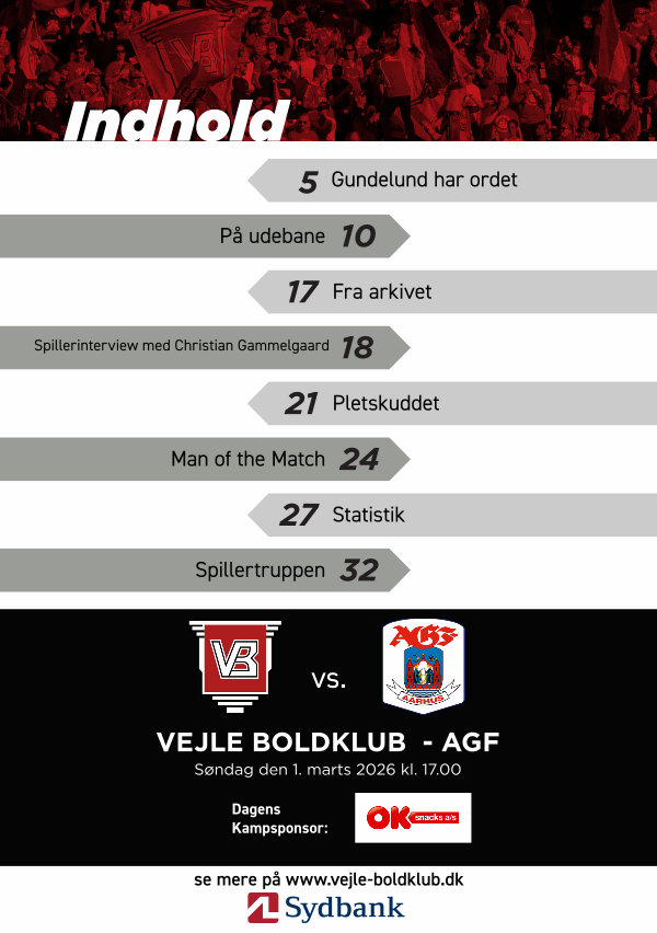 VEJLE BOLDKLUB- AGF Søndag den 1. marts 2026 kl. 17.00