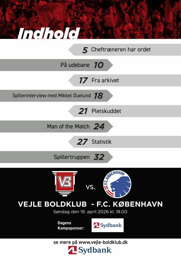 VEJLE BOLDKLUB- F. C. KØBENHAVN Søndag den 19. april 2026 kl. 18.00