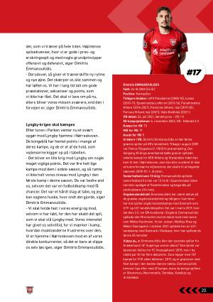 Dimitris EMMANOUILIDIS Født : 24.10.2000 ( 24 år ) Position : Kantspiller Tidligere klubber : APO Panaliartos ( 2005-10 ), Lolaos ( 2010-11 ), Epaminondas Lefktron ( 2012-16 ), Panathinaikos Athens ( 2016-2021 ), Panionios Athens , leje ( 2019-20 ), Fortuna Sittard , leje ( 2021 ), Vejle Boldklub ( 2021- ) VB-debut : 26 . juli 2021 , Sønderjyske – VB 1-0 50-kampsjubilæum : 6 . november 2022 , VB - Hillerød 2-3 Kampe for VB : 73 Mål for VB : 19 Assist for VB : 5 Grækere i VB : Dimitris Emmanouilidis er den første græske spiller på VB ’ s førstehold . Tilbage i august 2009 var Petros Filippakos ( f . 1983 ) til prøvetræning . Den dengang 25-årige amerikansk fødte græker spillede enkelte kampe for AEK Athens og Olympiakos inden han kom til test i Nørreskoven , men han blev vurderet til ikke at kunne forstærke vejlenserne , der skulle til at begynde sæsonen 2009-10 i 1 . division . Seniorfodbold som 13-årig : Emmanouilidis spillede seniorfodbold fra han var 13-16 år i Epaminondas inden han blev opdaget af Panathinaikos og begyndte på storklubbens U16-hold . Ungdomslandshold : Emmanouilidis har været aktuel på de græske ungdomslandshold og tidligere i karrieren har han spillet ungdomslandskampe mod Danmark som U19- og U21-landsholdsspiller . Det var i marts 2019 , hvor det blev 2-2 i en EM-kvalkamp i England . Emmanouilidis spillede alle 90 minutter mod et dansk hold med navne som Mikkel Kaufmann , Victor Jensen , Mathias Ross og Mikkel Damsgaard . I oktober 2021 spillede han en U21- landskamp mod Danmark i Gladsaxe , hvor han spillede de første 45 minutter