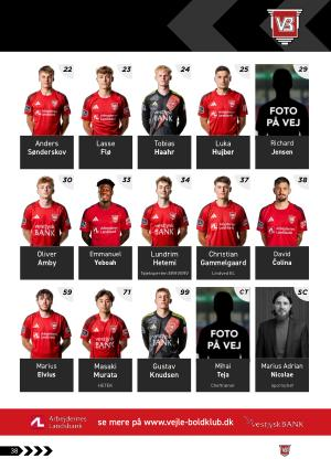 se mere på www . vejle-boldklub . dk 38 David Čolina 24 Tobias Haahr 25 Luka Hujber 30 Oliver Amby 71 Masaki Murata HETEK 37 Christian Gammelgaard Lindved EL 34 Lundrim Hetemi Tøjeksperten ERHVERV 99 Gustav Knudsen 22 Anders Sønderskov 59 Marius Elvius 23 Lasse Flø CT Mihai Teja Cheftræner SC Marius Adrian Nicolae Sportschef 29 Richard Jensen 33 Emmanuel Yeboah 38