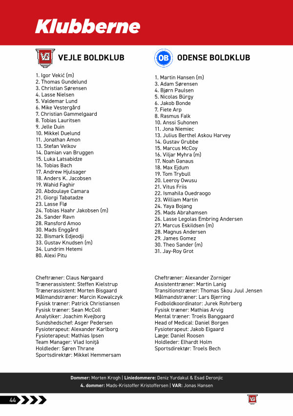 Dommer: Morten Krogh | Liniedommere: Deniz Yurdakul & Esad Deronjic 4. dommer: Mads-Kristoffer Kristoffersen | VAR: Jonas Hansen