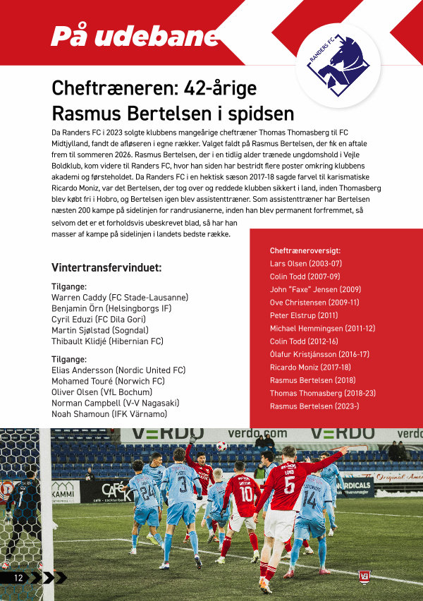 Da Randers FC i 2023 solgte klubbens mangeårige cheftræner Thomas Thomasberg til FC Midtjylland, fandt de afløseren i egne rækker. Valget faldt på Rasmus Bertelsen, der fik en aftale frem til sommeren 2026. Rasmus Bertelsen, der i en tidlig alder trænede ungdomshold i Vejle Boldklub, kom videre til Randers FC, hvor han siden har bestridt flere poster omkring klubbens akademi og førsteholdet. Da Randers FC i en hektisk sæson 2017-18 sagde farvel til karismatiske Ricardo Moniz, var det Bertelsen, der tog over og reddede klubben sikkert i land, inden Thomasberg blev købt fri i Hobro, og Bertelsen igen blev assistenttræner. Som assistenttræner har Bertelsen næsten 200 kampe på sidelinjen for randrusianerne, inden han blev permanent forfremmet, så selvom det er et forholdsvis ubeskrevet blad, så har han masser af kampe på sidelinjen i landets bedste række.